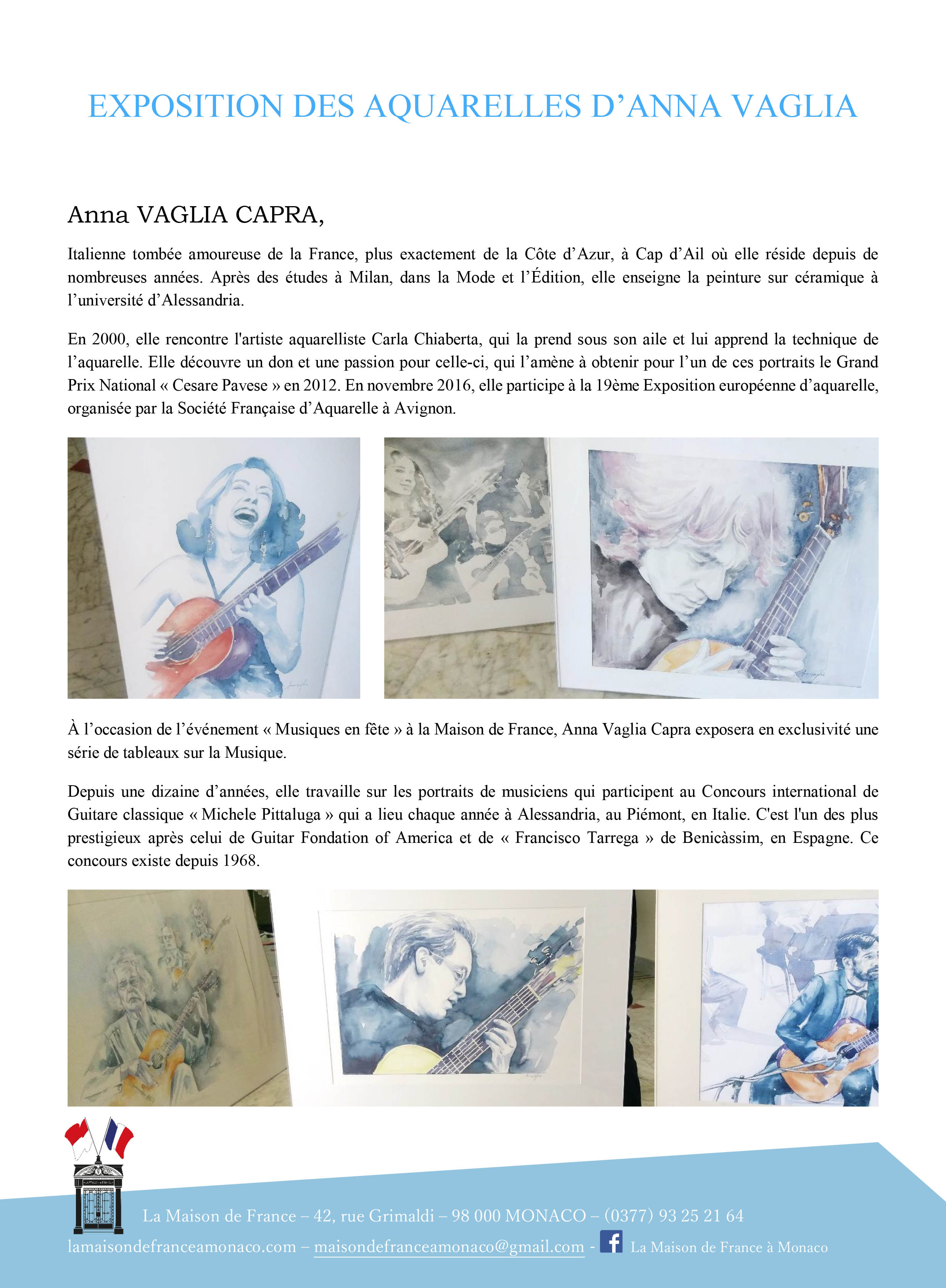 dal 19 al 24 giugno "Symphonie d'Aquarelle" esposizione di acquerelli di Anna Vaglia Capra a Monaco (vedi la locandina)